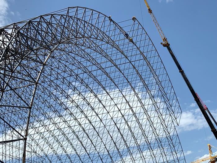 (2)网架加工前应对现场尺寸进行复测,确认无误后方可进行加工、安装;网架制作、运输、安装应遵守《空间网格结构技术规程》JGJ7-2010、《钢网架阿里螺栓球节点》JG/T 10-2009、《钢网架阿里螺栓球节点用高强度螺栓》 GB/T 16939-2016、《阿里钢结构阿里工程阿里施工规范》 GB50755-2012、《阿里钢结构阿里工程施工质量验收标准》 GB50205-2020。